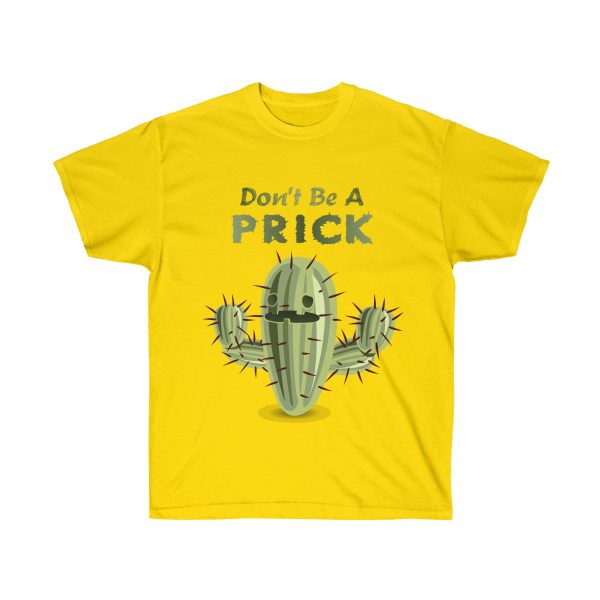 “Don’t Be A Prick” with a picture of a big prickly cactus.