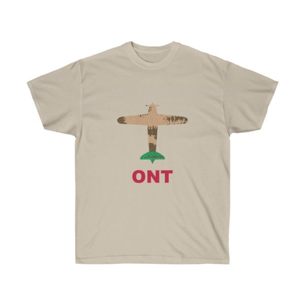 Let other flyers know with this modern looking shirt designed with a plan and the letters “ONT” on it representing Ontario International Airport. The print is done in the look of the California Flag.